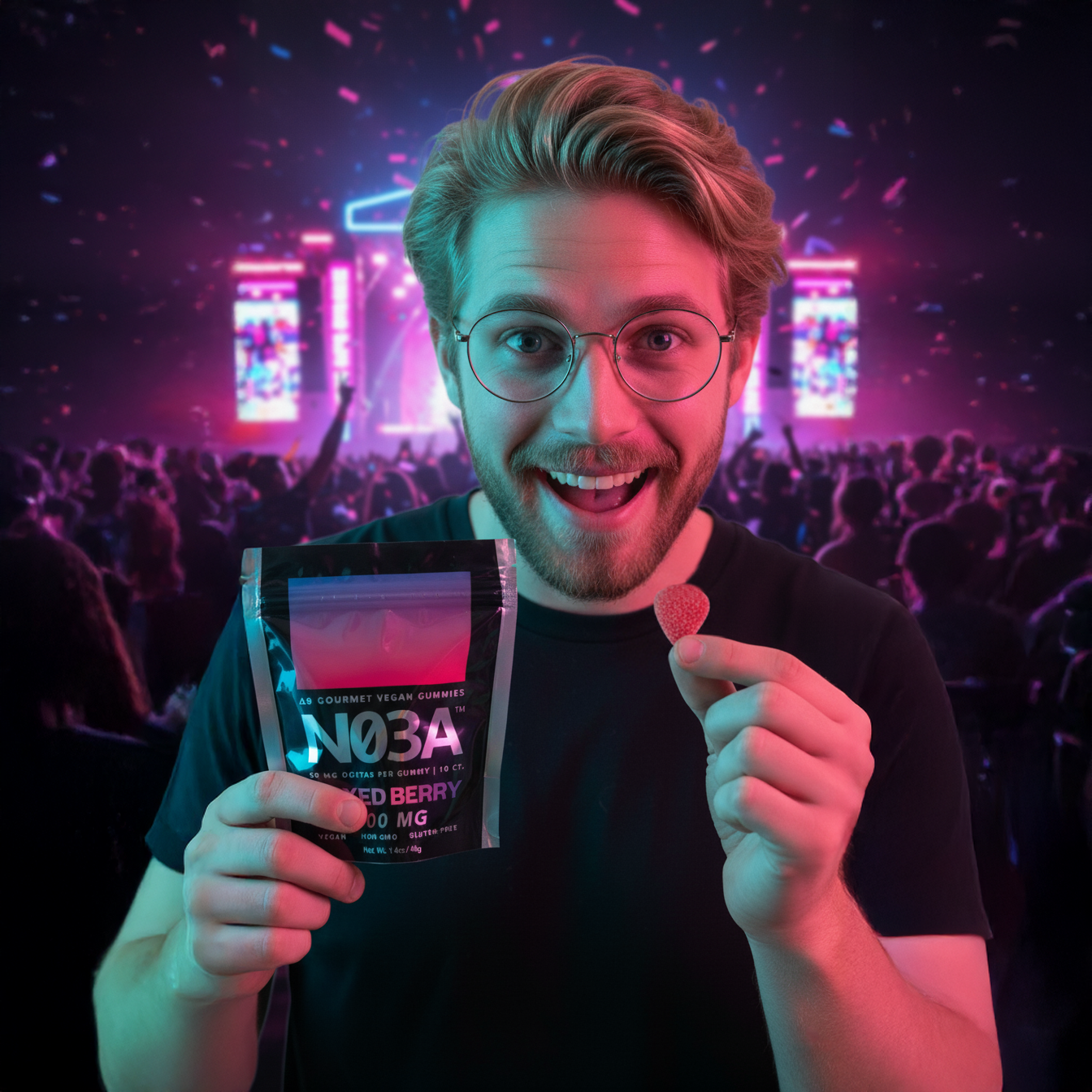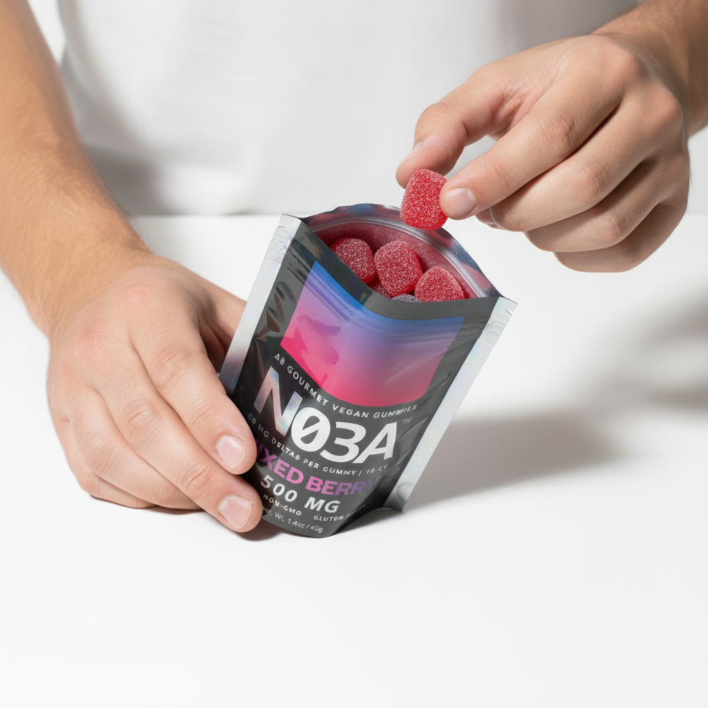 Everyone has a different experience with edibles based on a number of factors including weight, metabolism, and how much you ate that day. If you’re new to NO3A we suggest starting your dose at 0.25 of a gummy and working your way up from there. Please allow 20 minutes - 1 hour before feeling the effects.